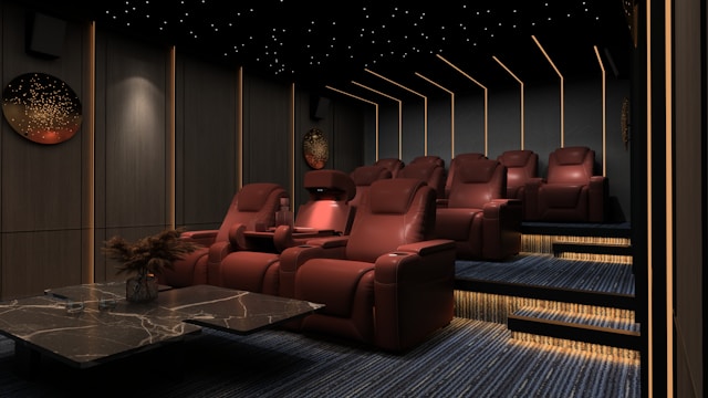 Custom-designed home theaters and private gyms engineered with specialized acoustic treatments and impact-resistant flooring.